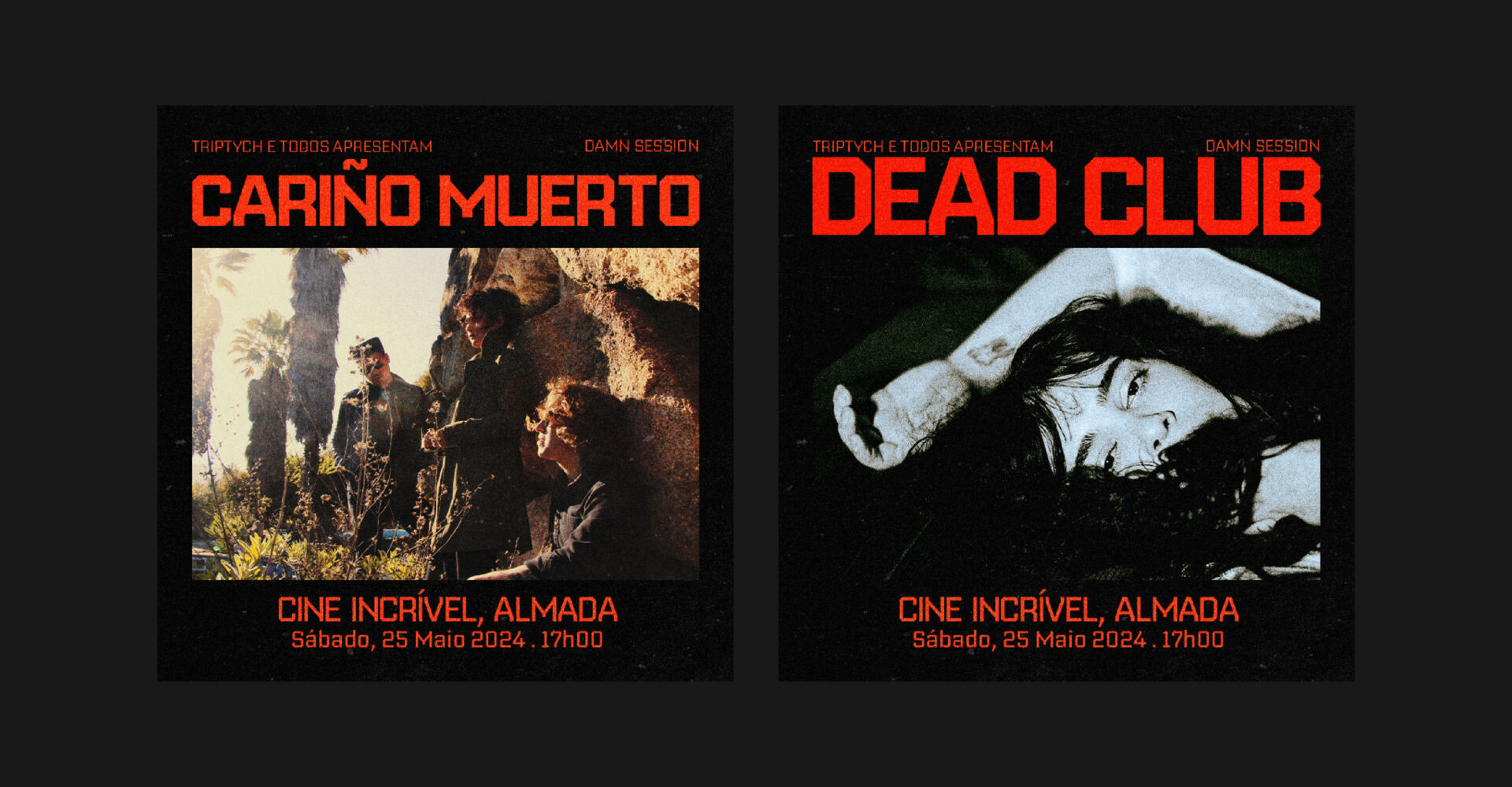Damn Sessions fue el primer evento creado por Triptych y Todos. Celebrada el 25 de mayo de 2024, en Cine Incrível de Almada, Portugal. El evento contó con conciertos de Dead Club y Cariño Muerto. Para este proyecto se desarrolló un cartel principal más dos carteles individuales para cada banda con fondos claros y oscuros.