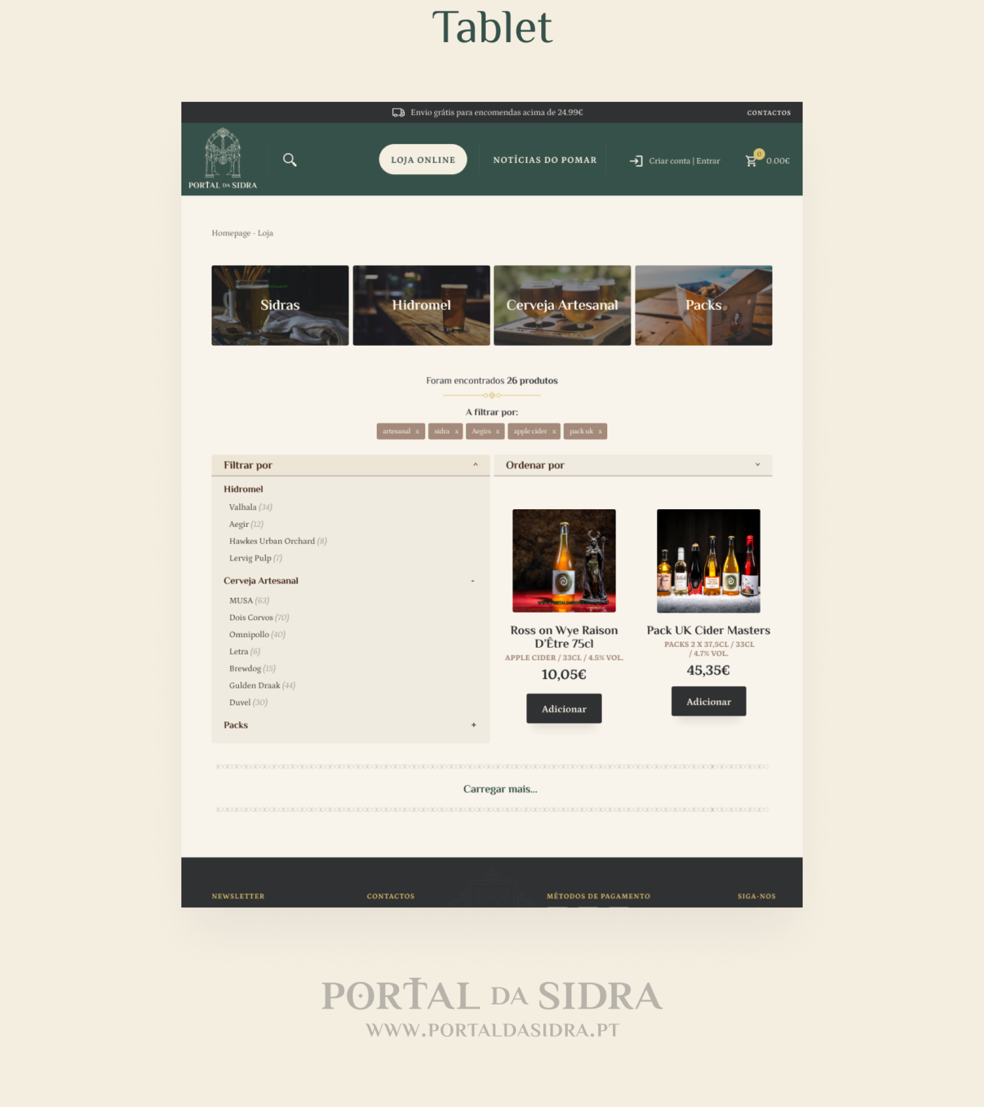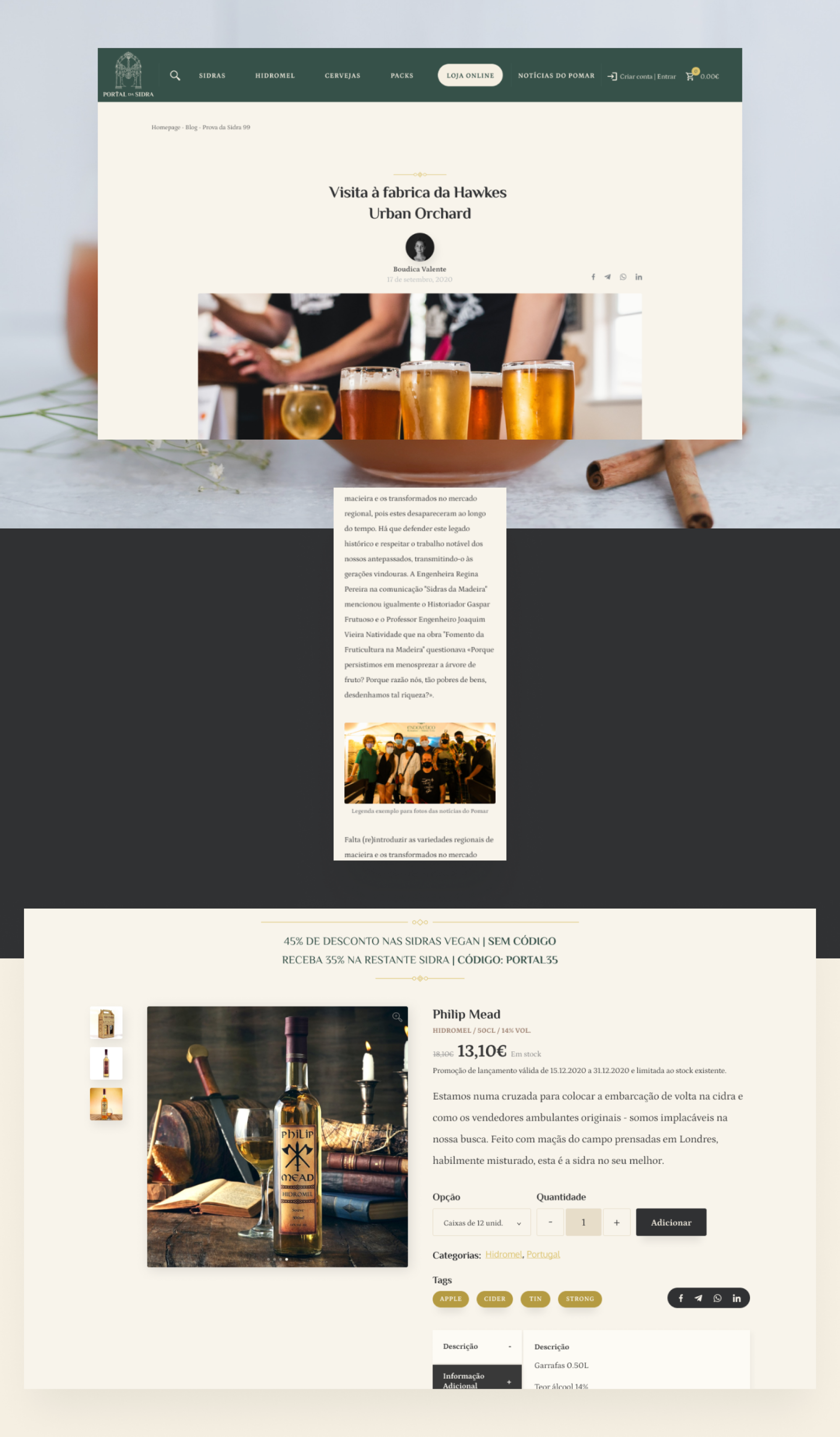 Portal da Sidra es un sitio web de e-commerce cuya misión es difundir y promover la cultura sidrera en Portugal. Venta de sidra, hidromiel y cerveza artesanal.