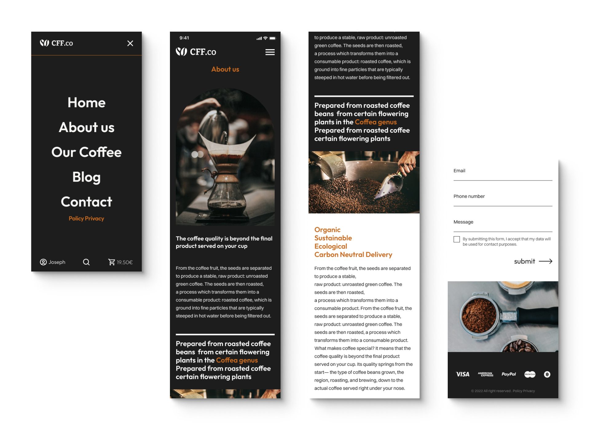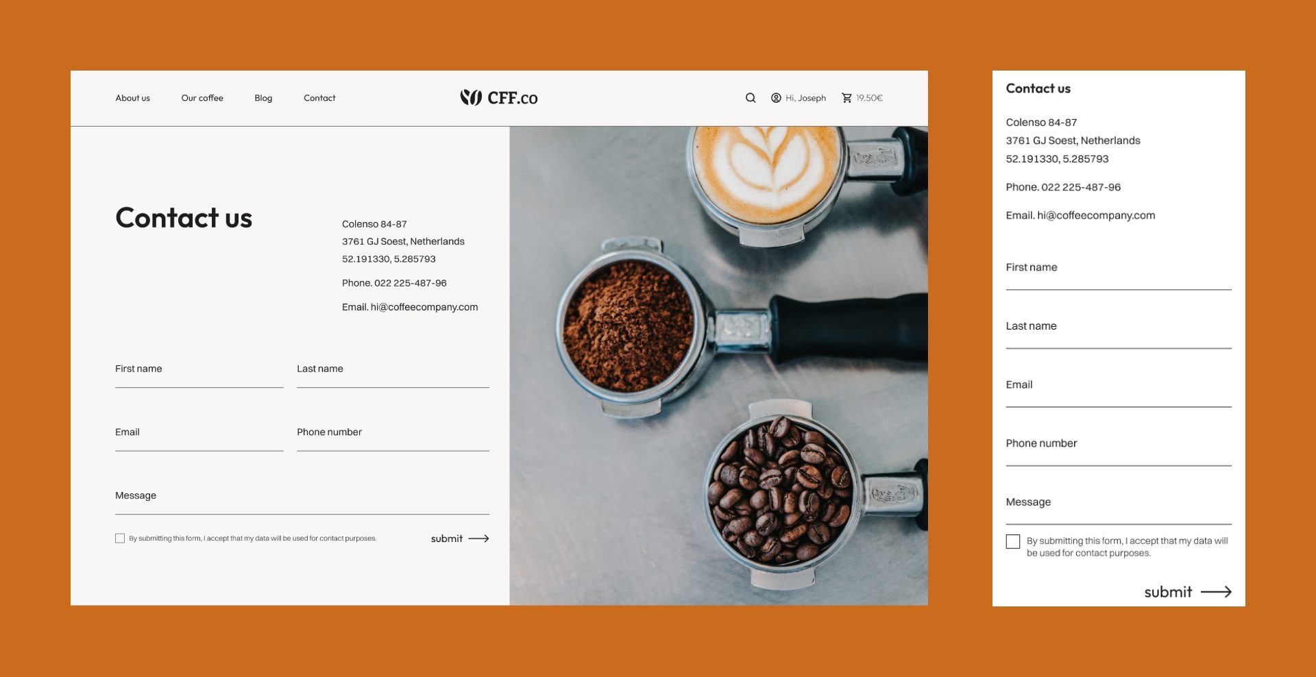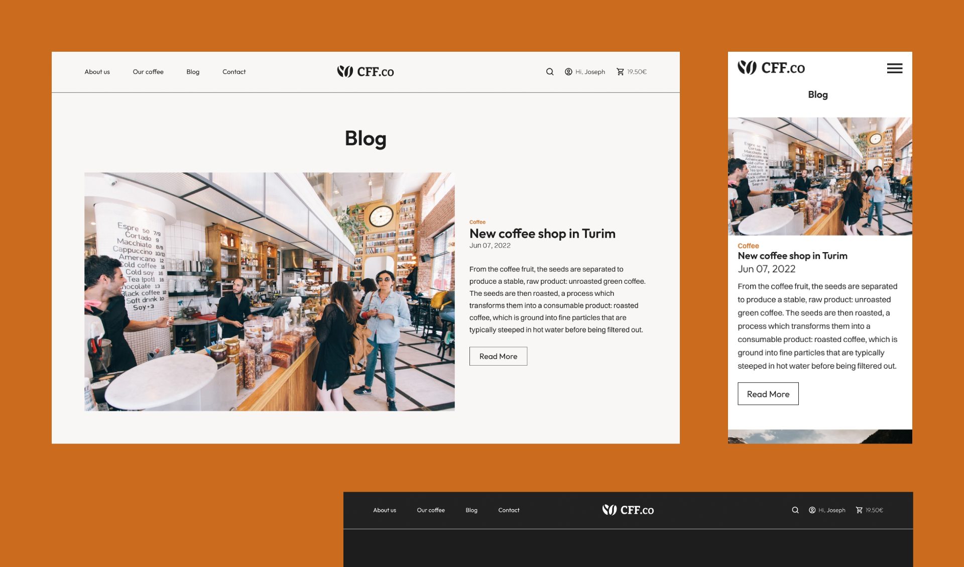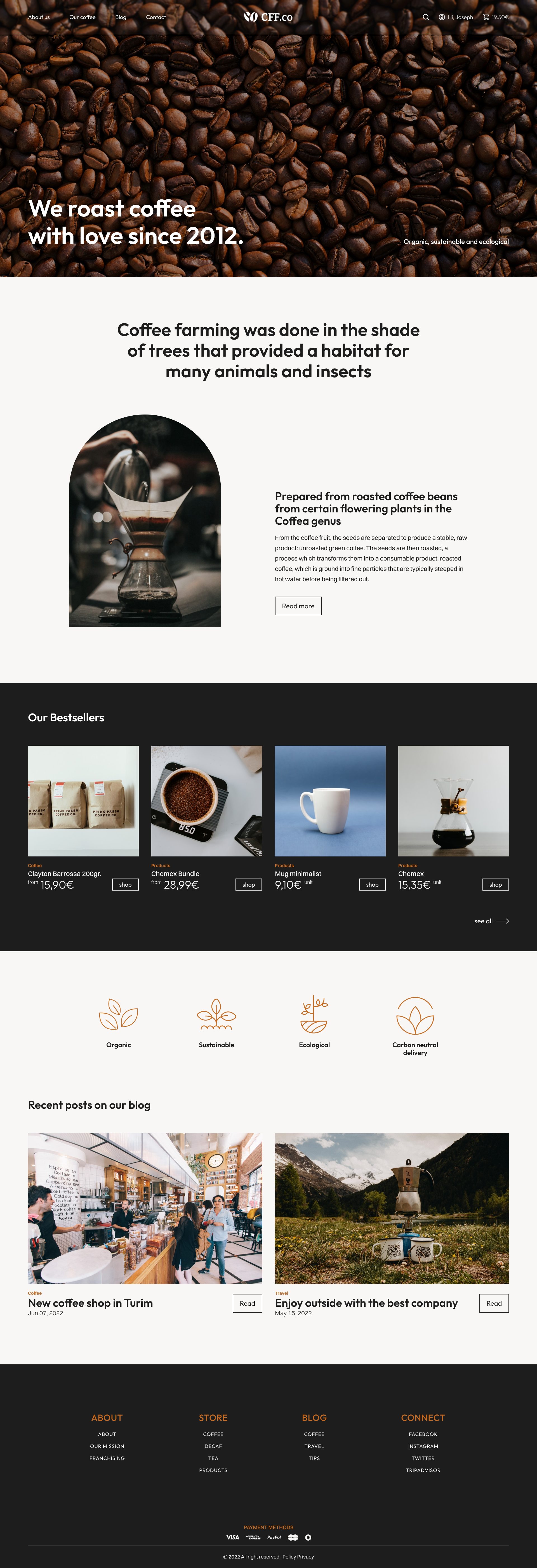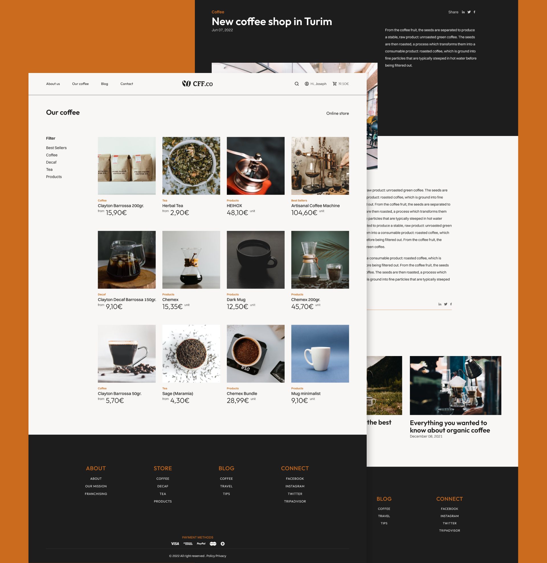 Coffee website é um projeto pessoal. Este website foi desenvolvido no Figma, com a finalidade de ser um site eCommerce e blog.