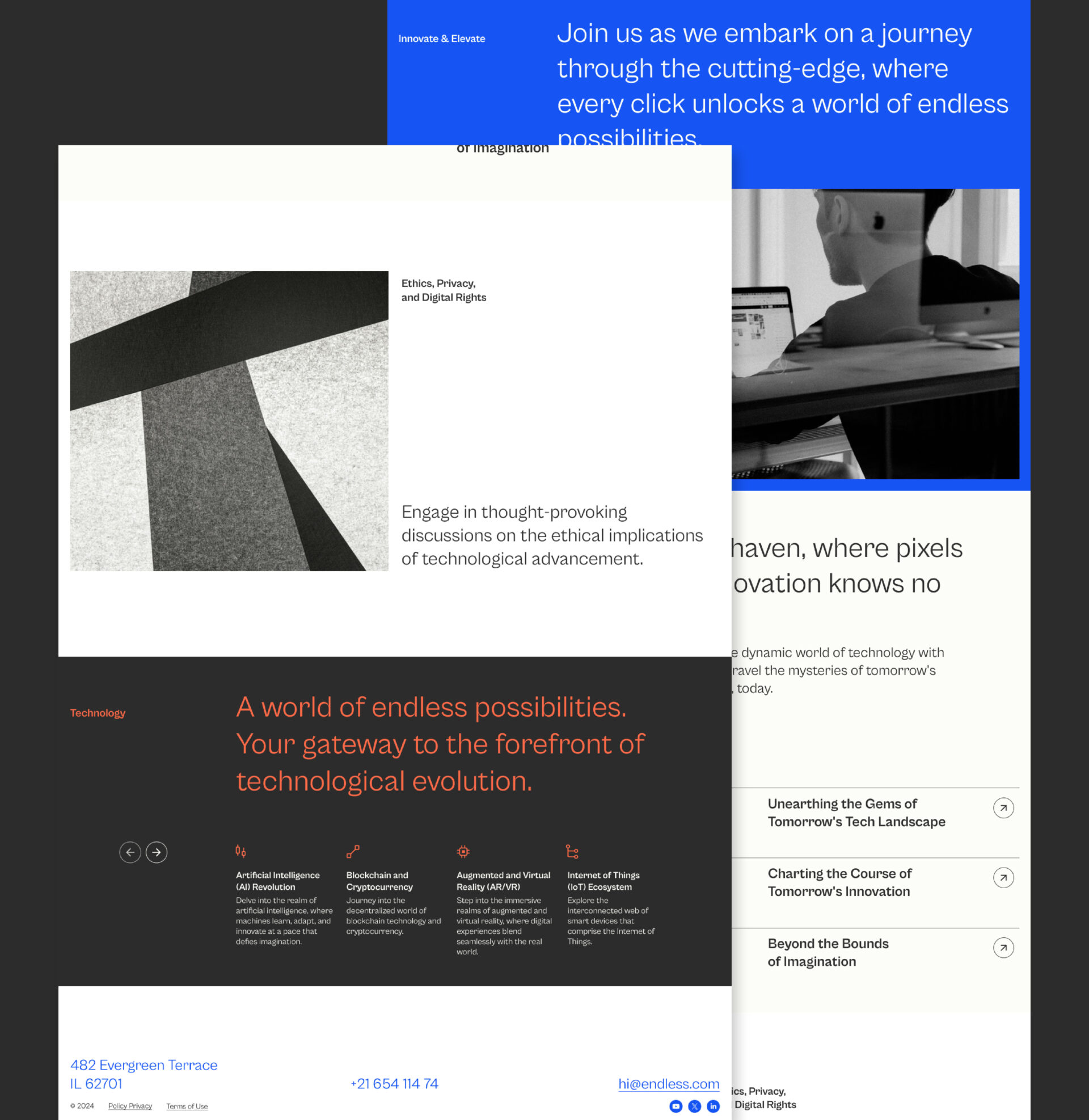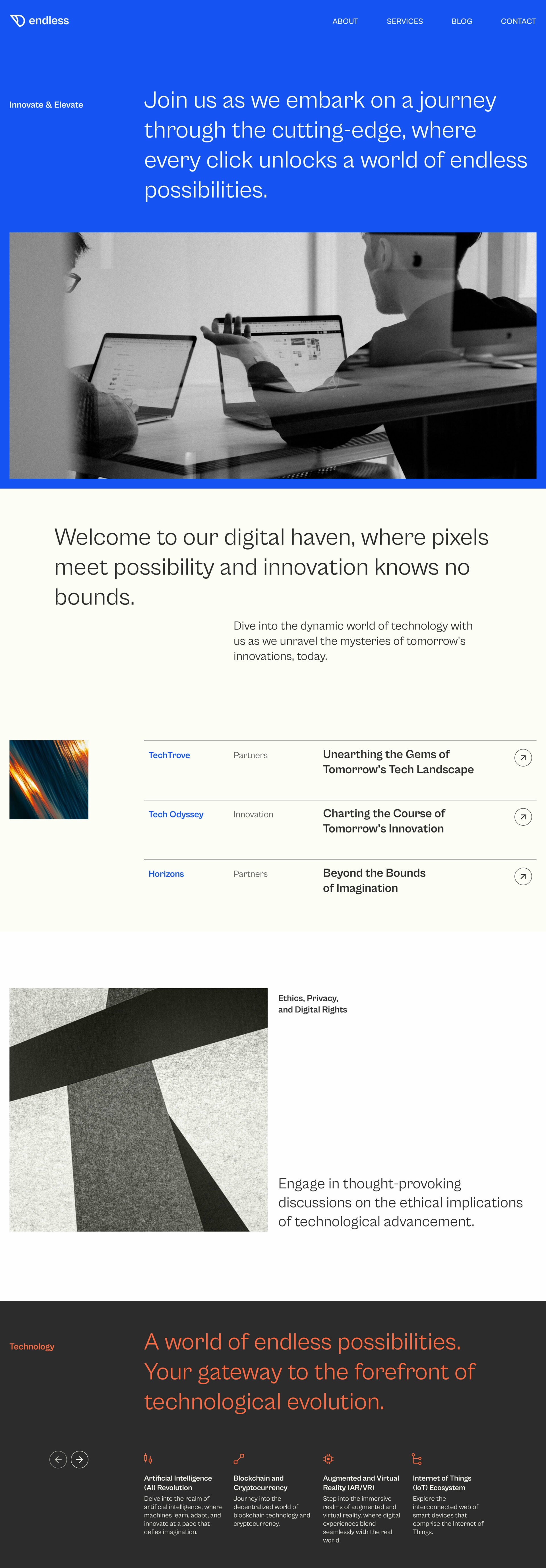 Endless website é um projeto pessoal. Este website foi desenhado no Figma, inspirado em sites e na temática da tecnologia.