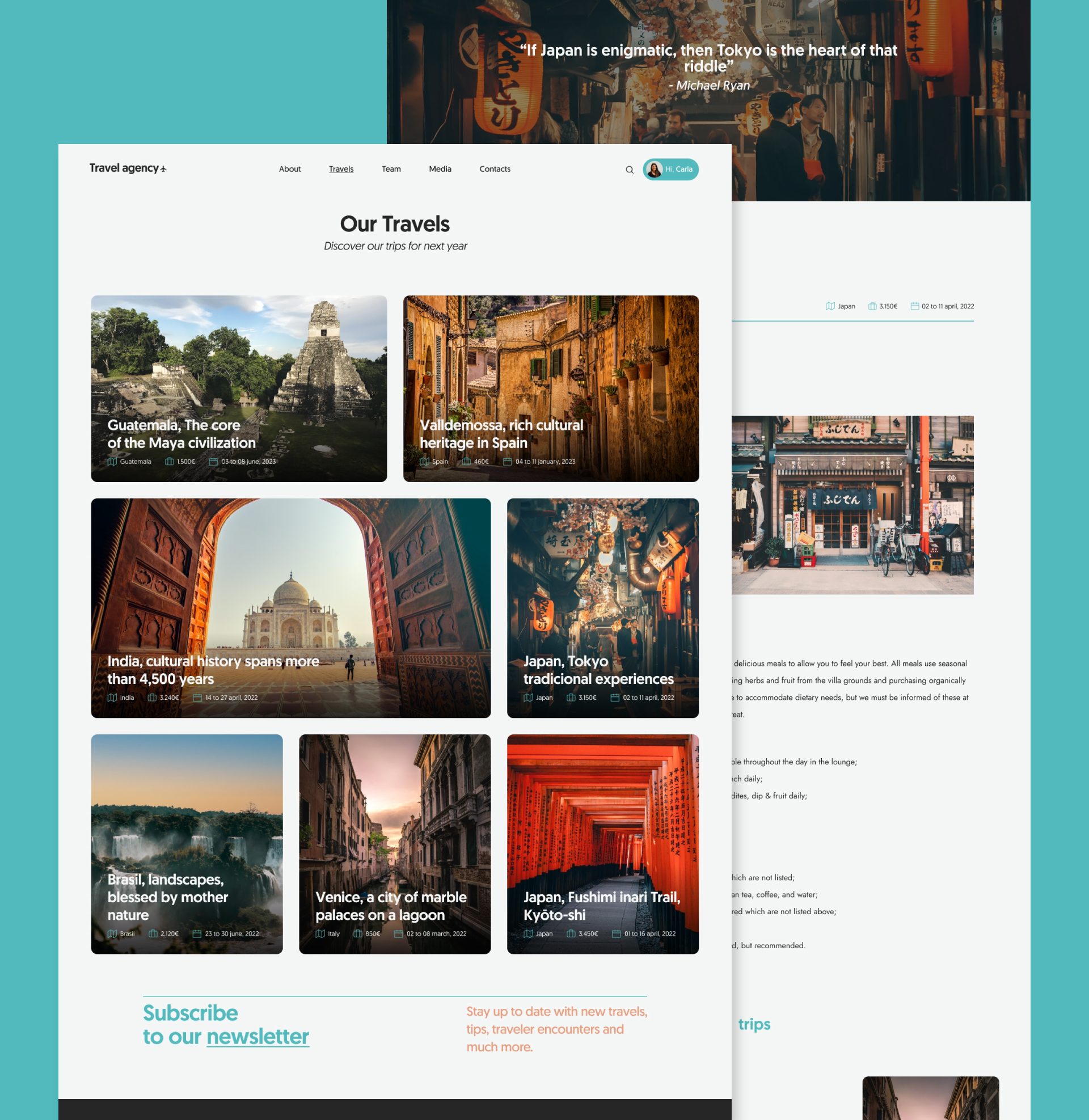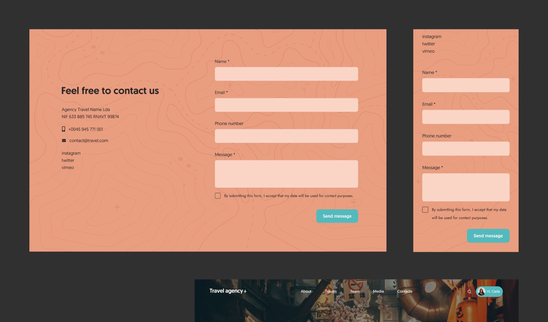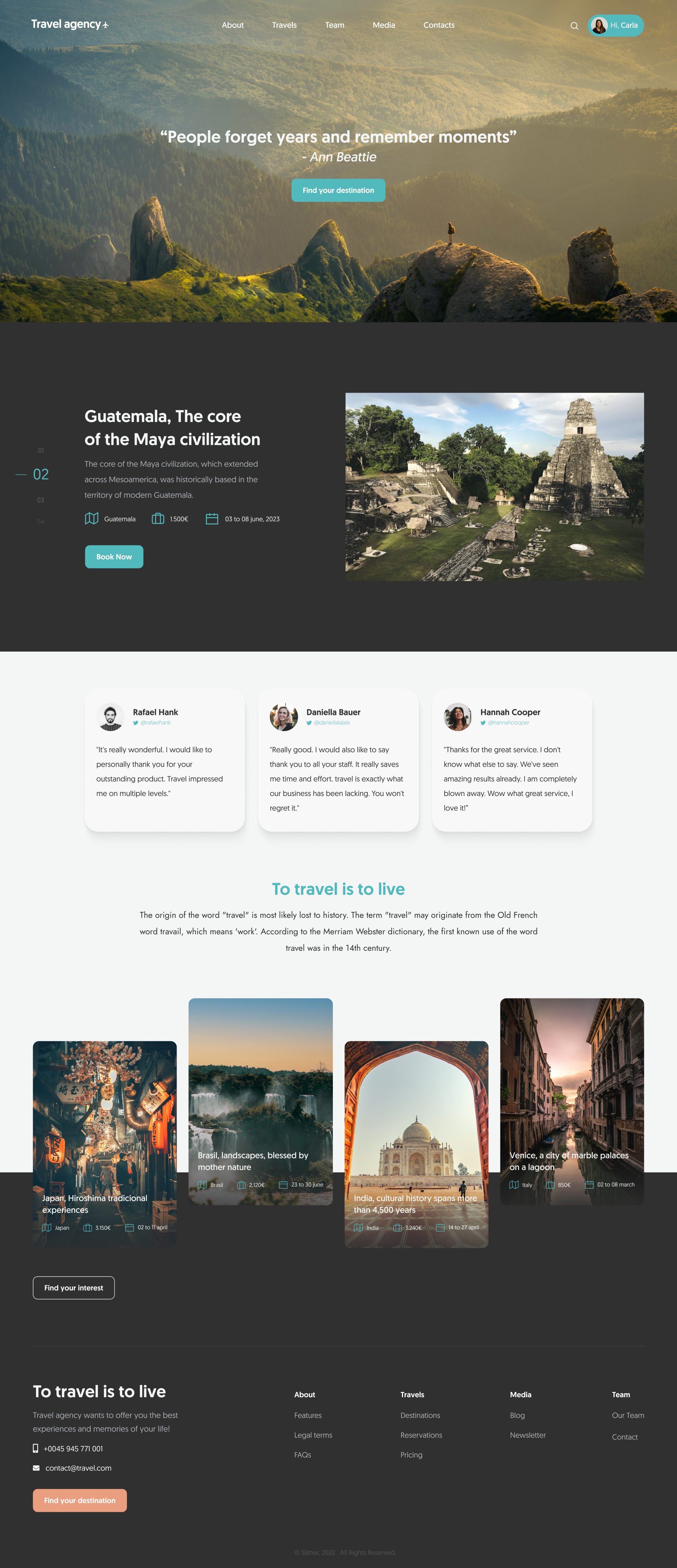 Travel agency website é um projeto pessoal. Este website foi desenhado no Figma, inspirado em sites de viagens e blog.