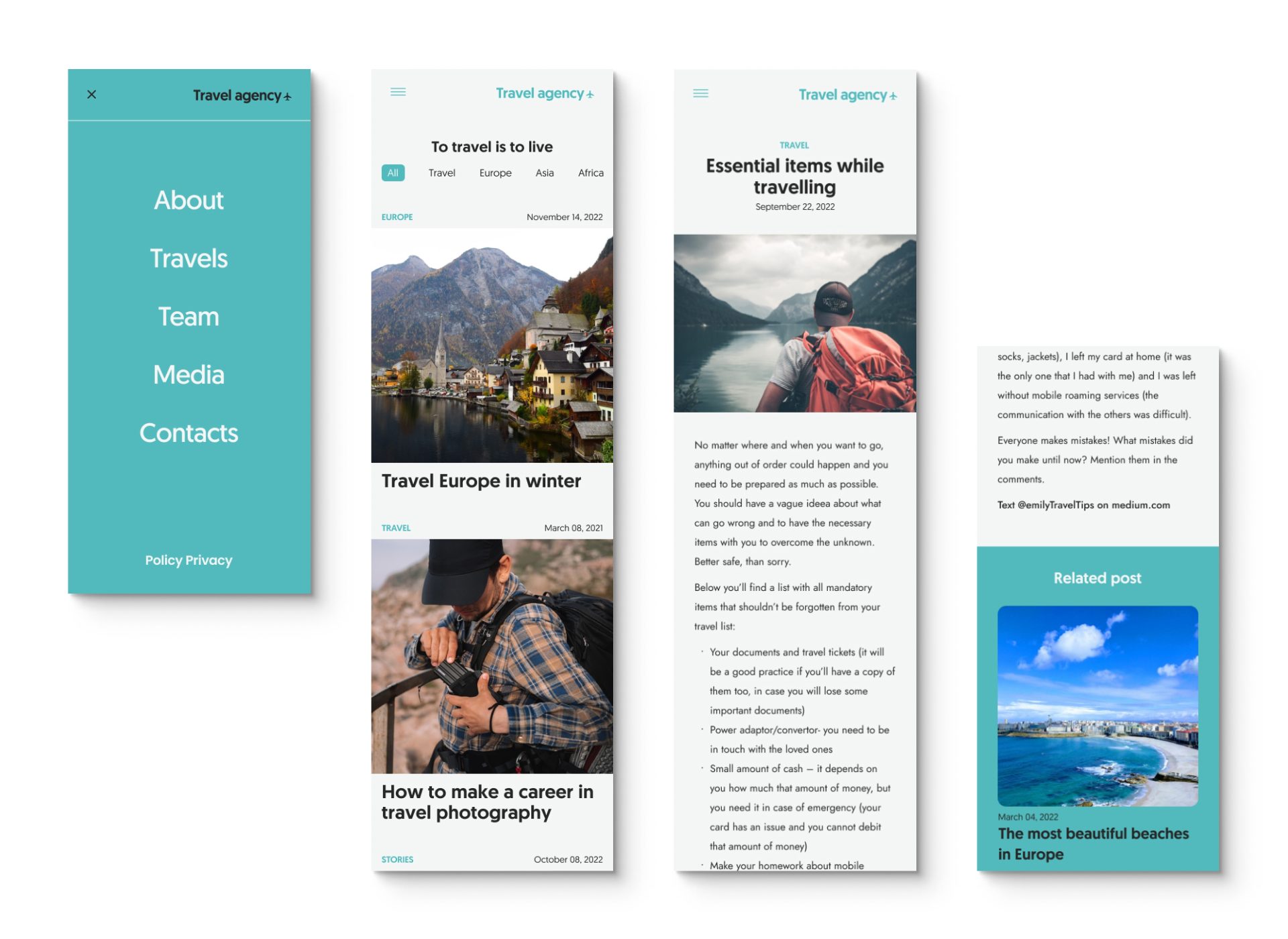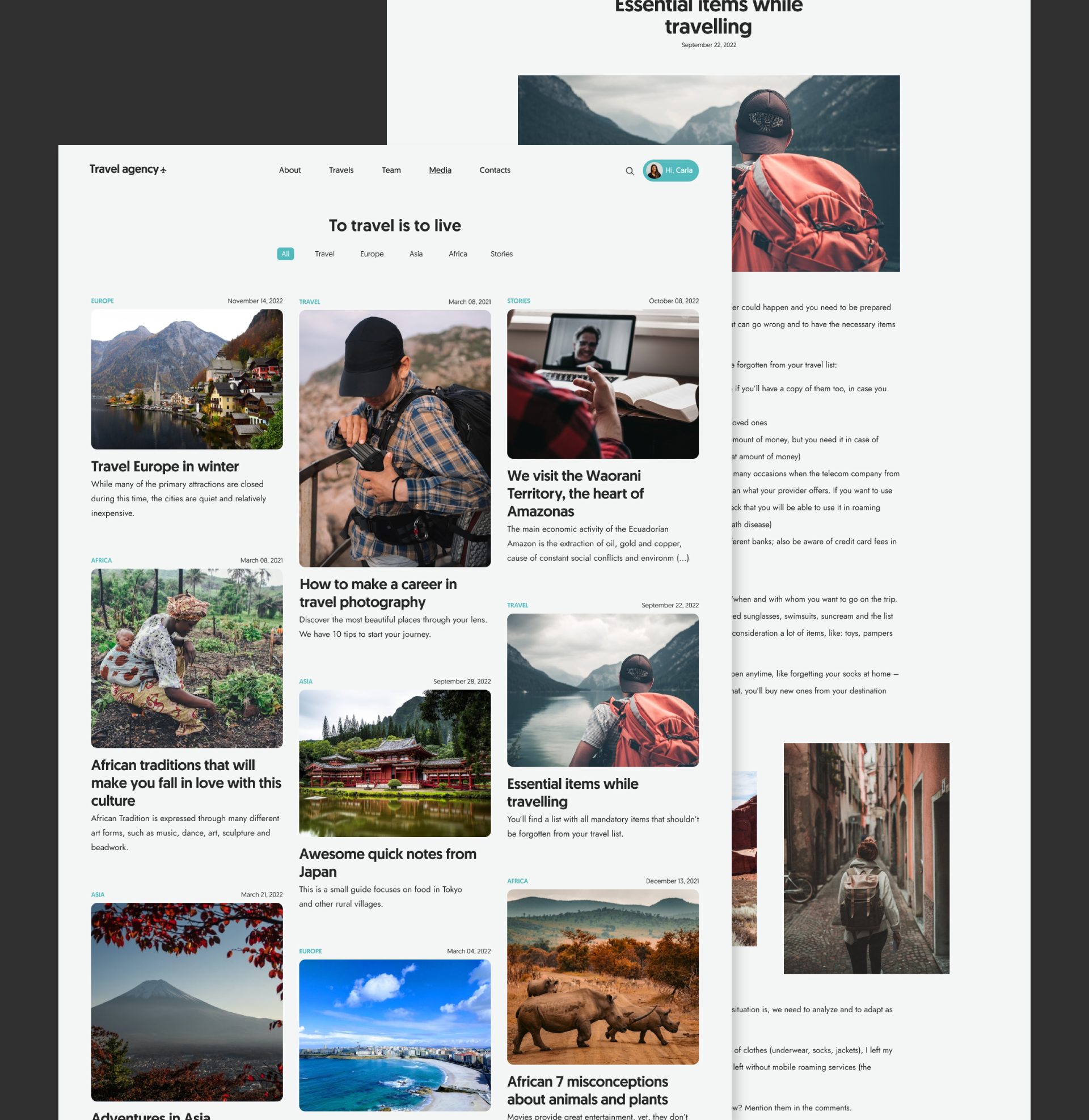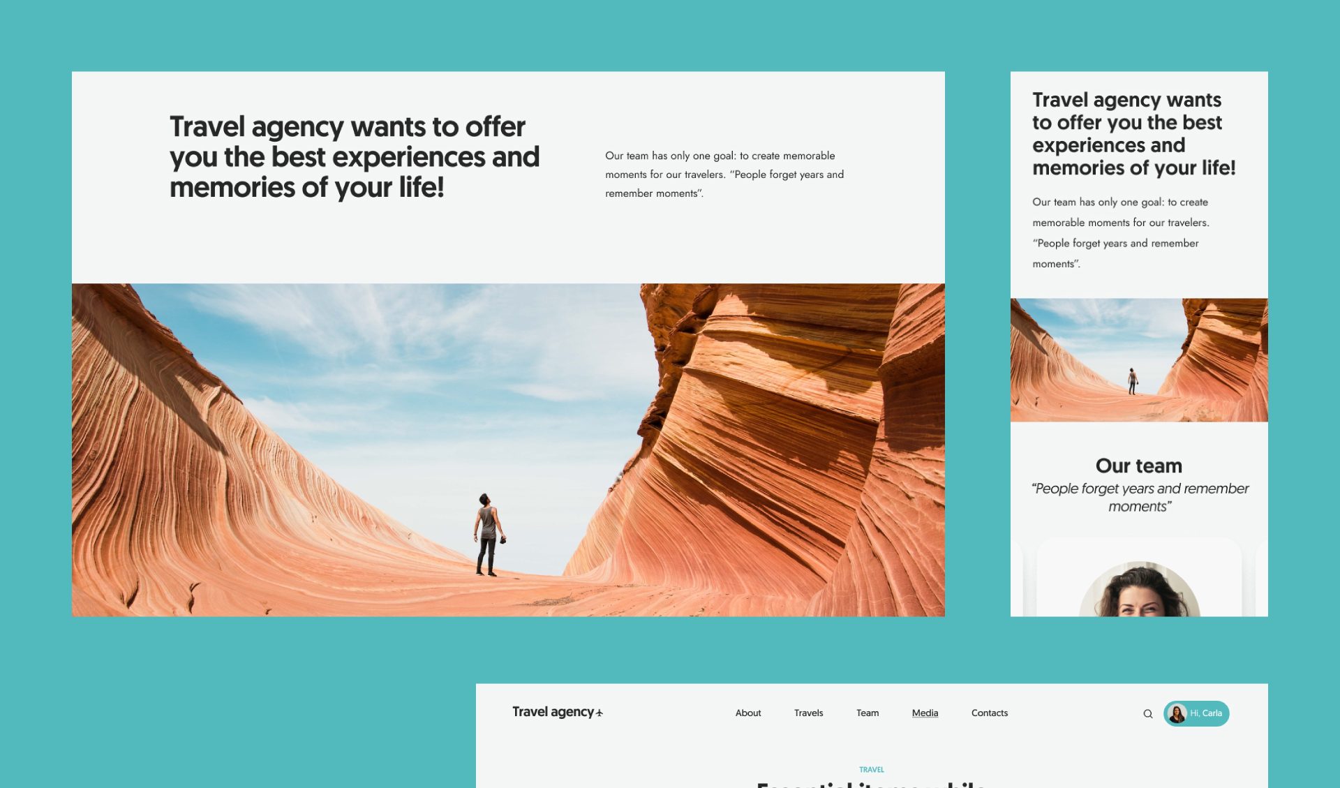 Travel agency website é um projeto pessoal. Este website foi desenhado no Figma, inspirado em sites de viagens e blog.